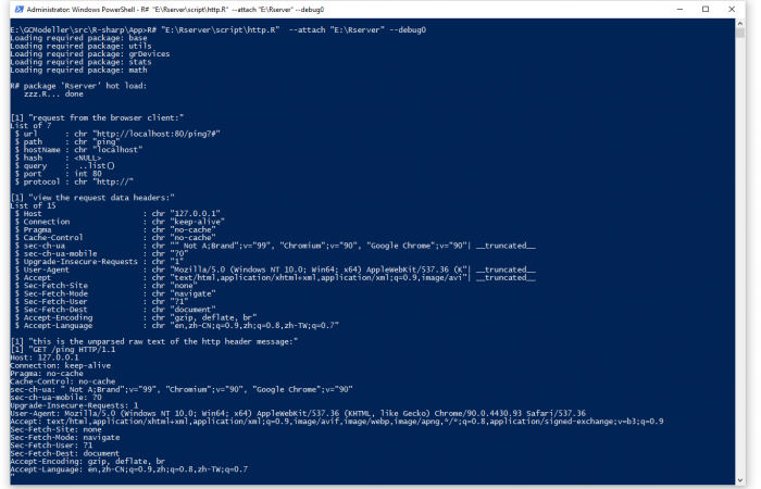 估计阅读时长: 5 分钟https://github.com/rsharp-lang/Rserver 在R语言之中,存在有一个FastRWeb的框架可以将R语言编写的脚本以http服务的方式运行于后台,供其他的语言进行调用。在R#语言之中,我也模仿着R语言之中的FastRWeb框架,创建了一个用于R#语言的web服务的程序包框架。 Order by Date Name Attachments httpr_commandline • 28 kB • 536 click 2021年6月16日http_PUT_test • […]