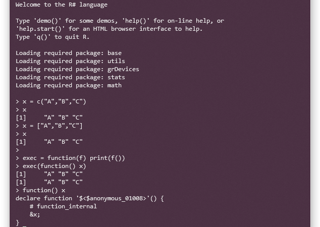 估计阅读时长: 8 分钟https://github.com/rsharp-lang/R-sharp R#语言的语法主要来自于R语言,其在保留了很多的R语言特性的同时,也添加了很多新语法特性。对于R#与R语言之间相同的语法特性,在本简明教程中我就不再叙述了,在这里主要是给大家说明一下R#语言相对于R语言新增的一些语法特性。 R#语言中的向量 R#语言任然保持着和其前辈R语言一样的向量化编程的特性。对于声明一个向量,在R语言之中,需要使用c函数进行申明,而对于R#语言而言,除了使用c函数,还可以直接使用方括号进行申明,例如: x = c("A","B","C") # x # [1] "A" "B" "C" x = […]