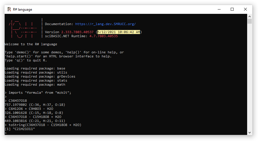 如果想要使用这个特性,需要在R#终端上导入mzkit程序包模块:imports "formula" from "mzkit";