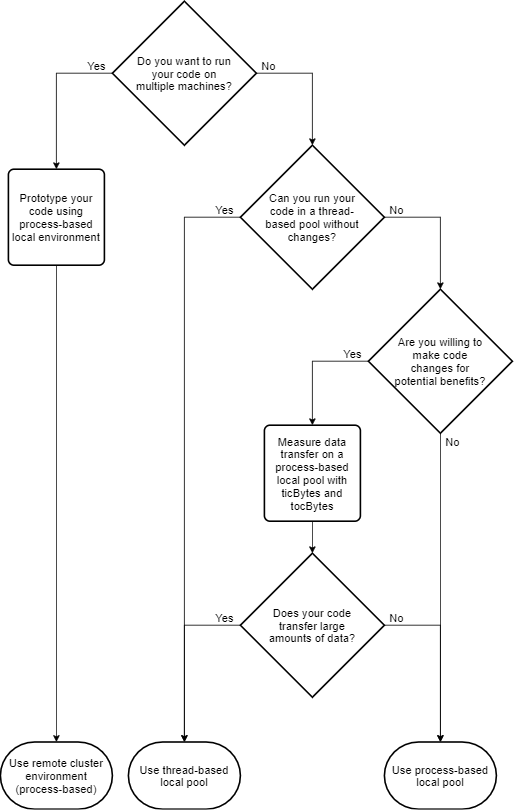 关于如果选择脚本代码的并行模式,我在这里借用了matlab文档网站里面的一张图来给大家做参考: