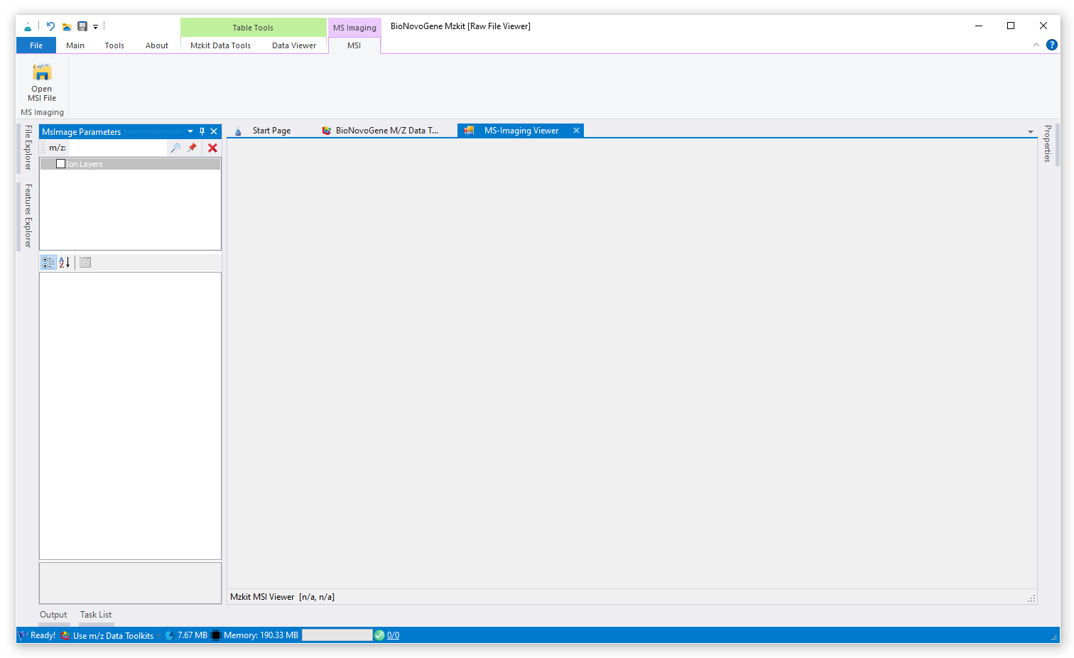 - 之后,点击它,就可以打开Mzkit的质谱成像浏览器界面了。在最开始的时候,这个浏览器界面是空白的,如下所示: