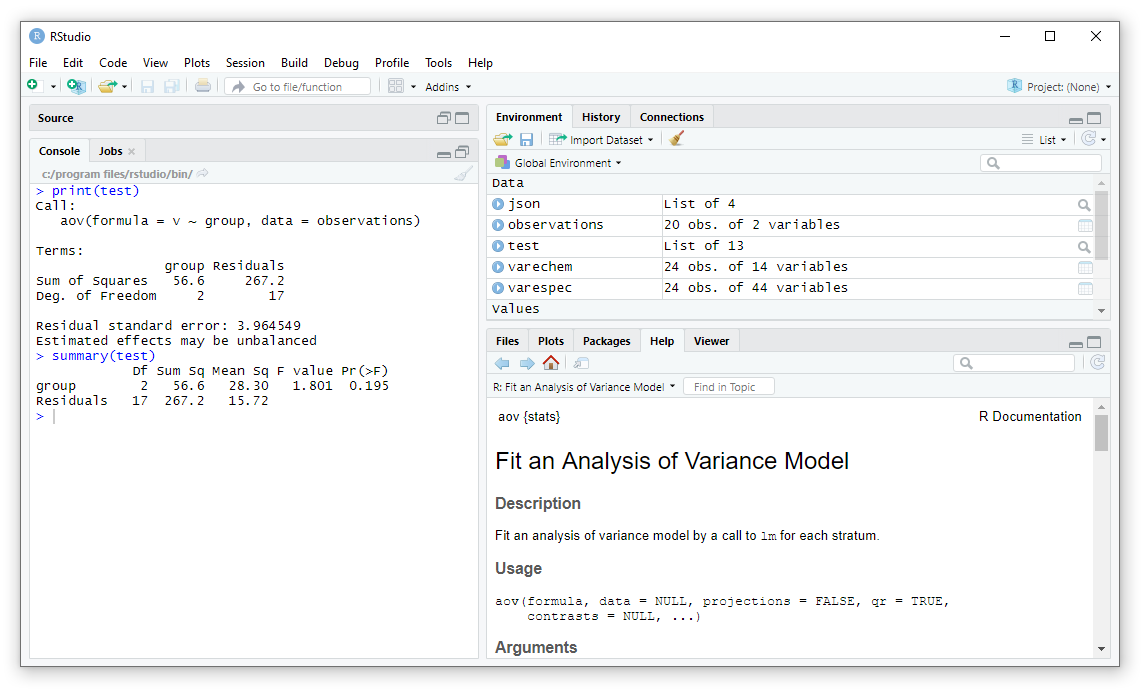 # aov(formula = v ~ group, data = observations)
