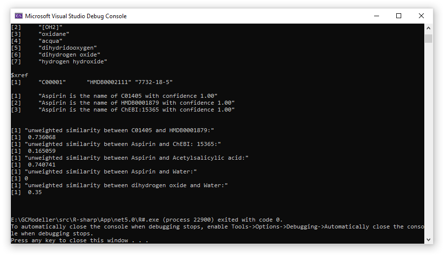 [2]     "Aspirin is the name of HMDB0001879 with confidence 1.00"