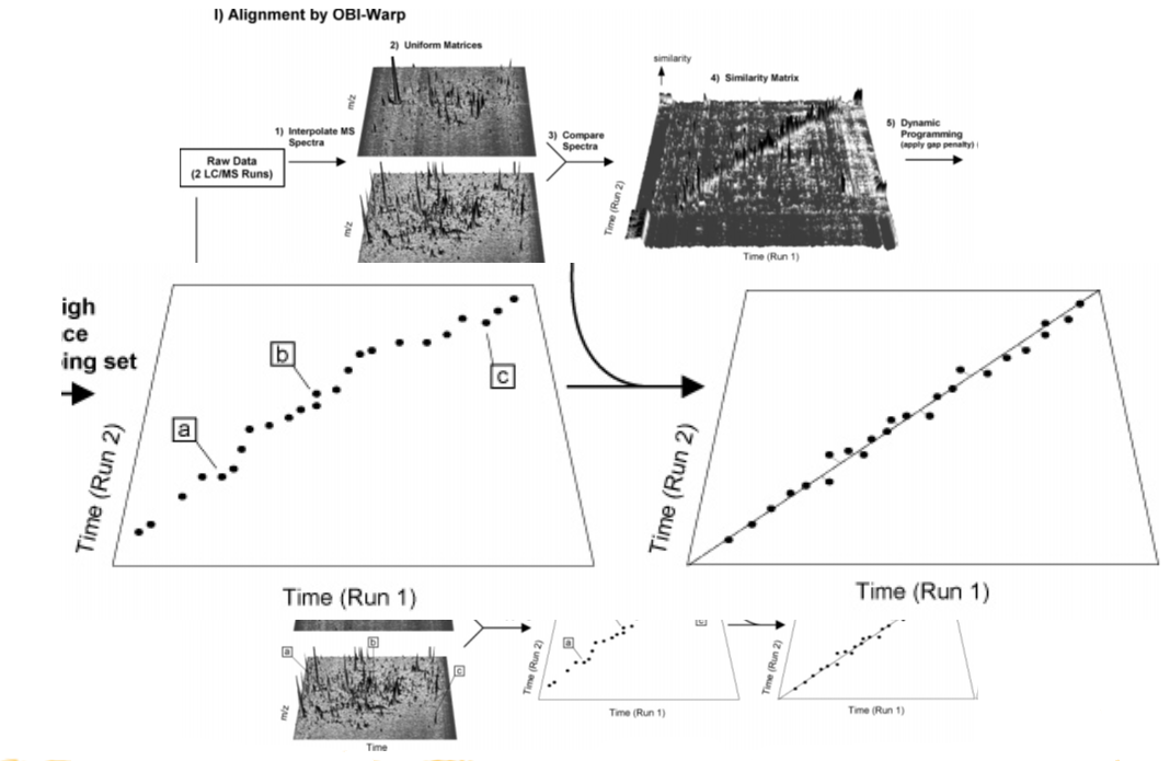 上面所提到的两个维度上的解卷积步骤,组合在一起构成了对二维的非靶向质谱原始数据完整的一个解卷积计算过程。下面我们就来针对这两个维度上的数据解卷积处理步骤来进行一些详细的原理讲解吧:
