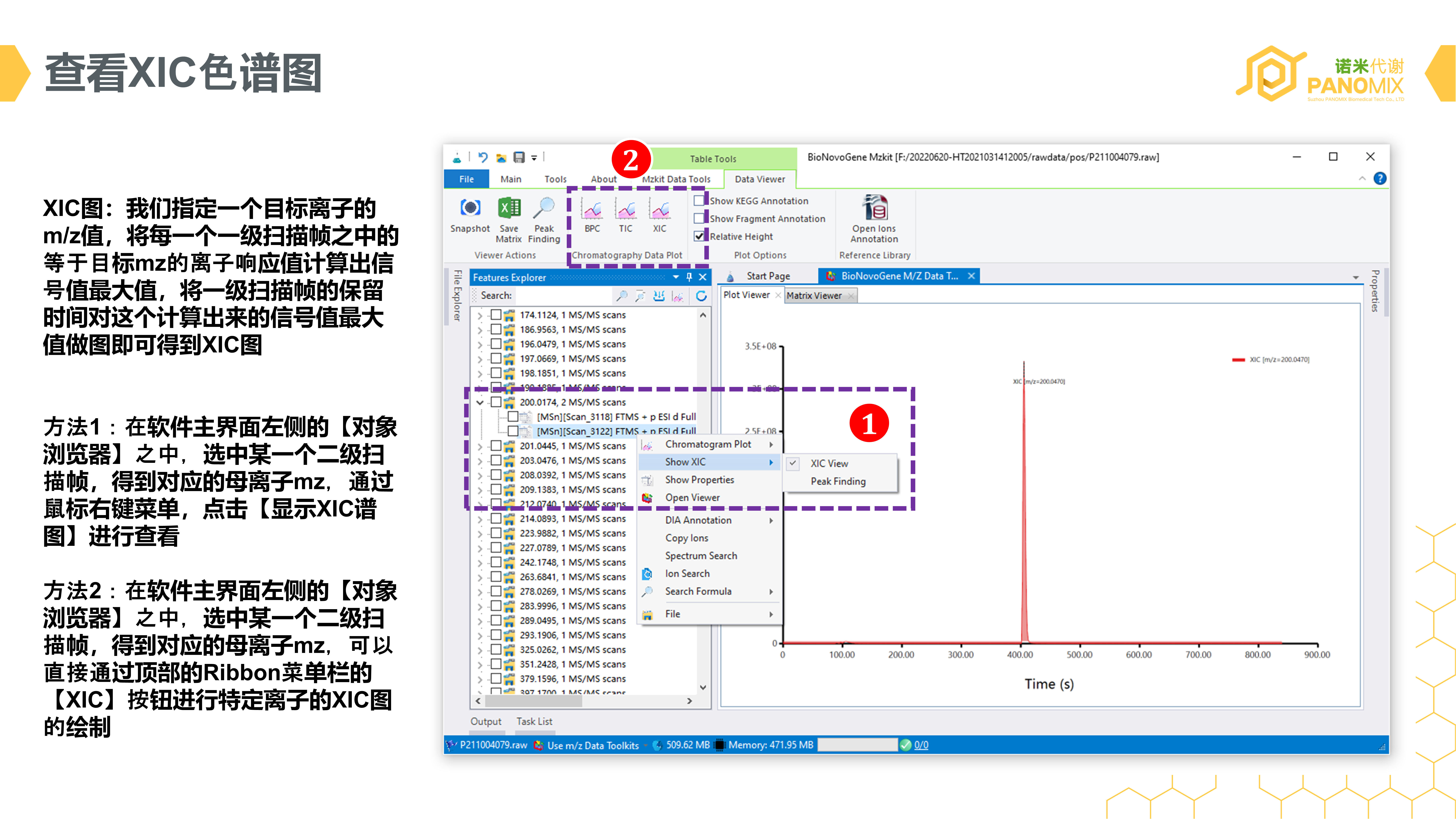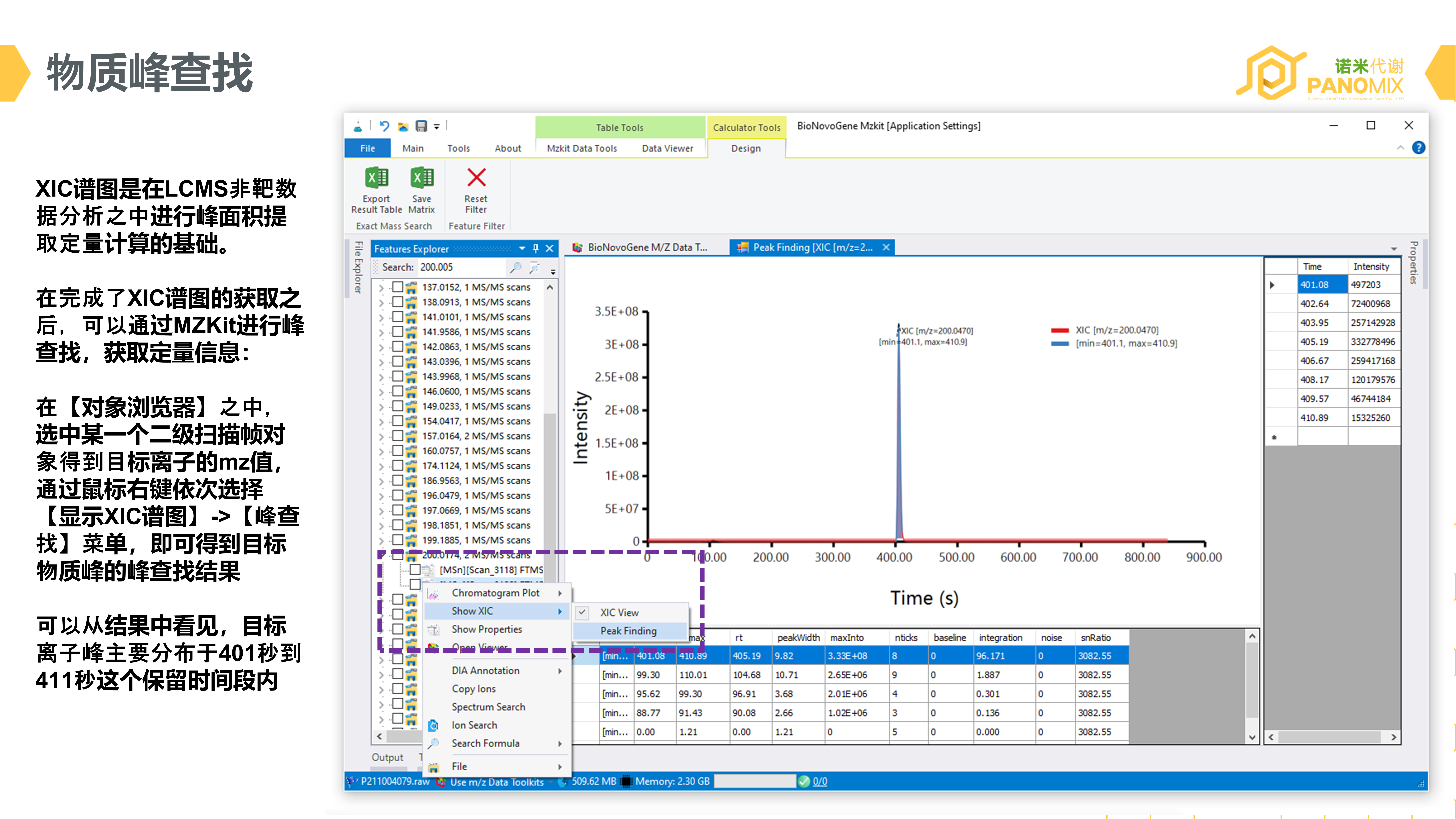基于上面的原理,我们可以在MZKit软件之中进行特定的XIC峰提取操作: