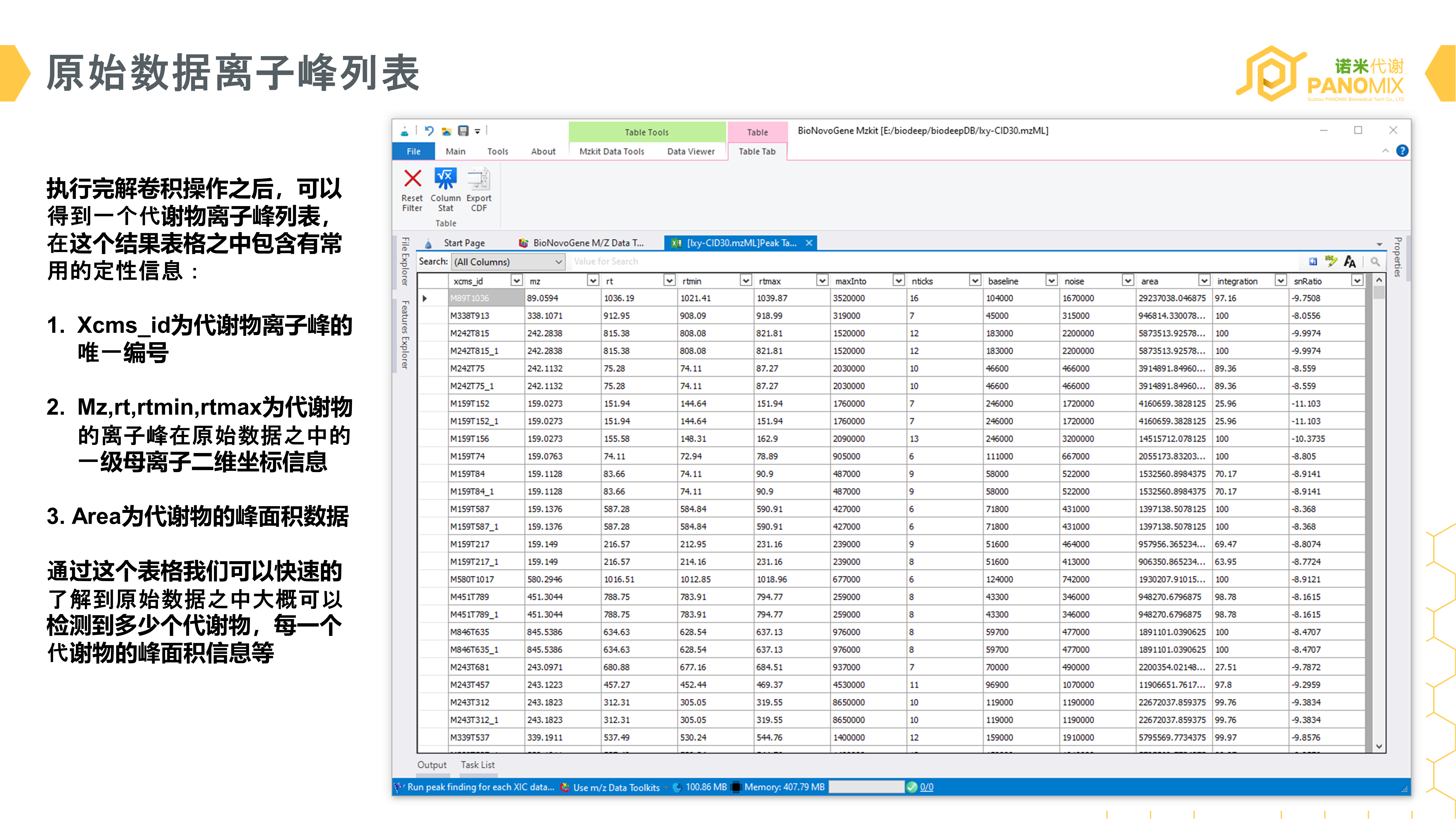 对于非靶向原始数据而言,相比较于较为干净的靶向检测数据,因为会同时检测非常多的代谢物,所以在原始数据之中会存在有很多混合数据,例如: