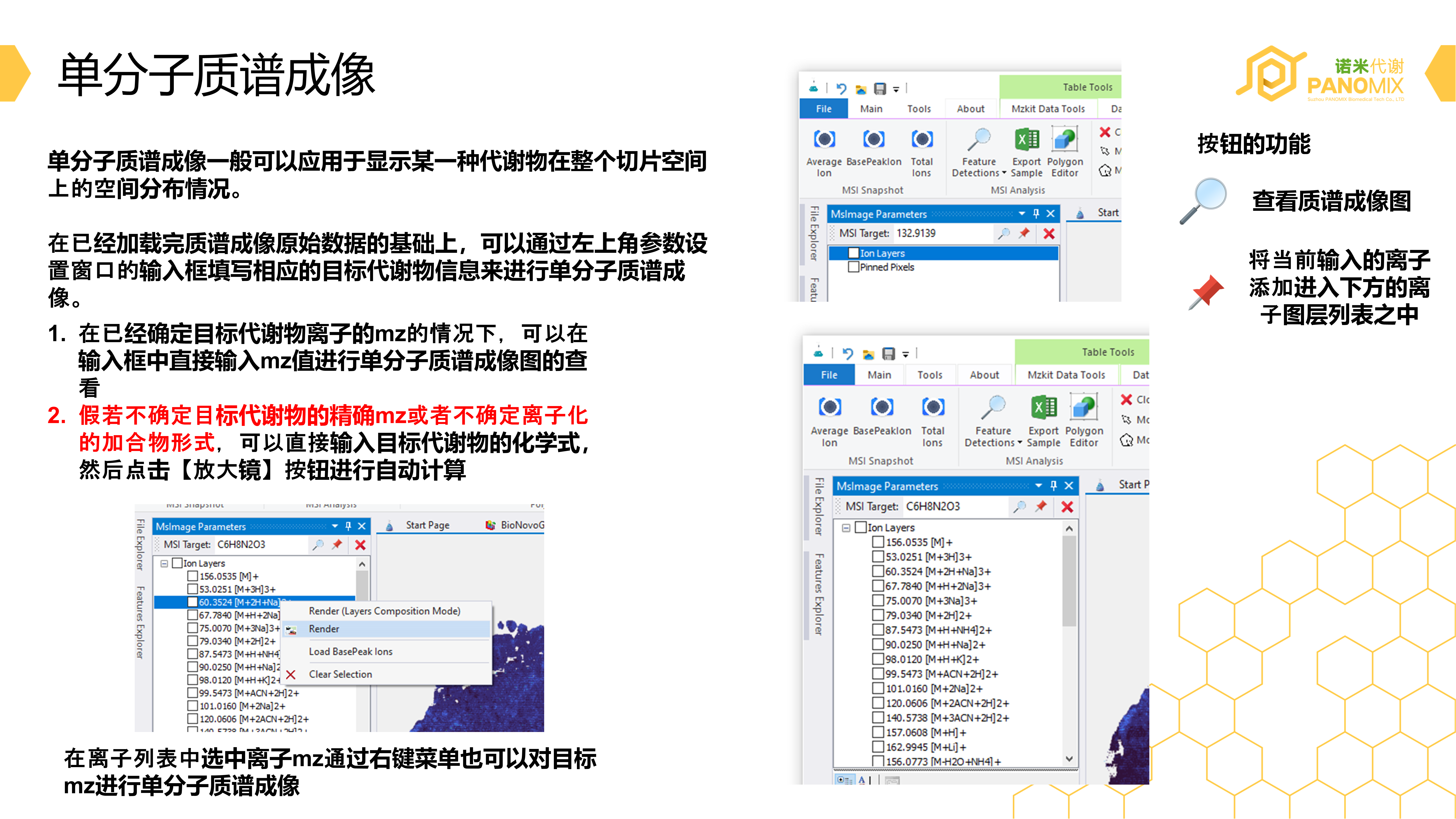 质谱成像是以质谱技术为基础的成像方法,该方法通过质谱直接扫描生物样品成像,可以在同一张组织切片或组织芯片上同时分析数百种分子的空间分布特征。简单而言,质谱成像技术就是借助于质谱的方法,再配套上专门的质谱成像软件控制下,使用一台通过测定质荷比来分析生物分子的标准分子量的质谱仪来成像的方法。