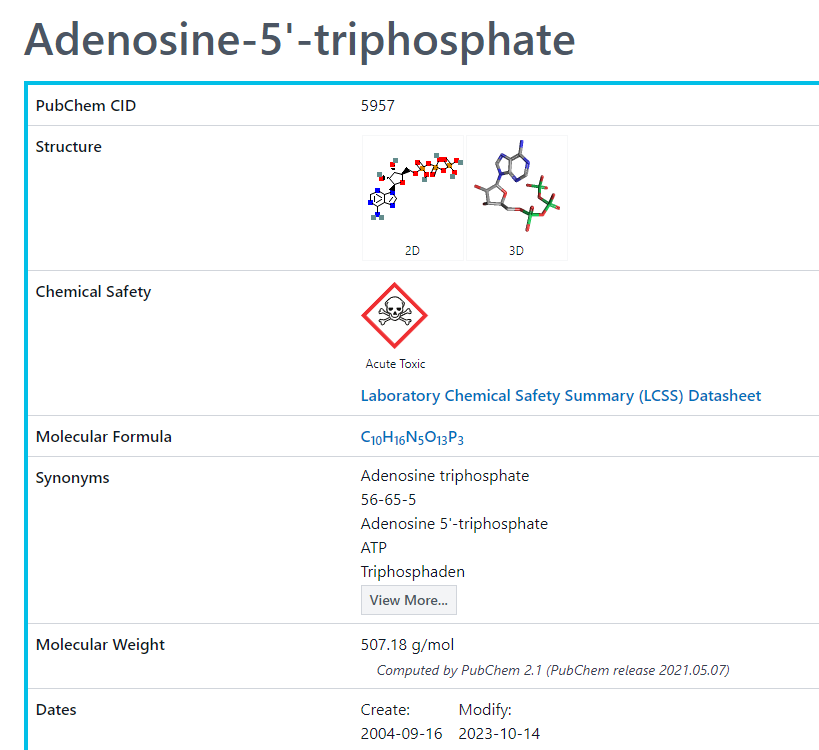 Adenosine-5'-triphosphate - 接着就可以点击输入框右边的【Search PubChem】按钮