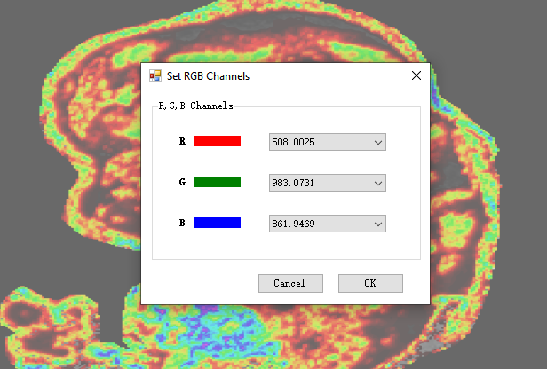 - 接着在弹出来的对话框之中,设定好目标离子分别对RGB颜色通道的映射关系