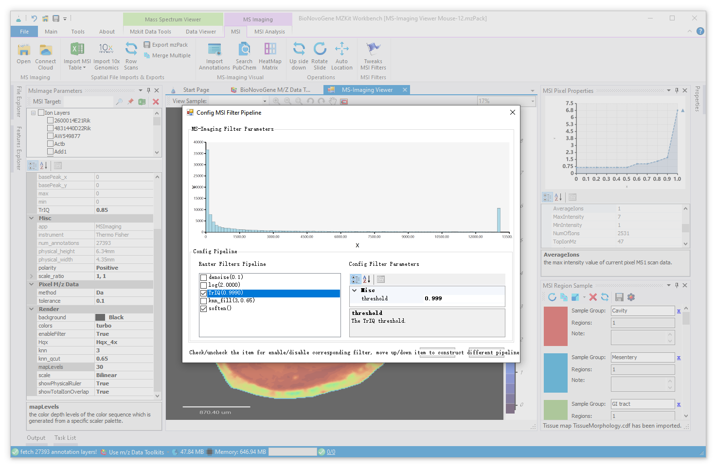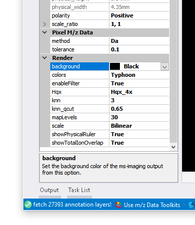 进行空间成像效果参数的调整,可以让我们针对成像图进行个性化调整,目前在MZkit工作站软件之中进行成像参数的调整,可以通过【MSImaging Parameter】窗口来完成: