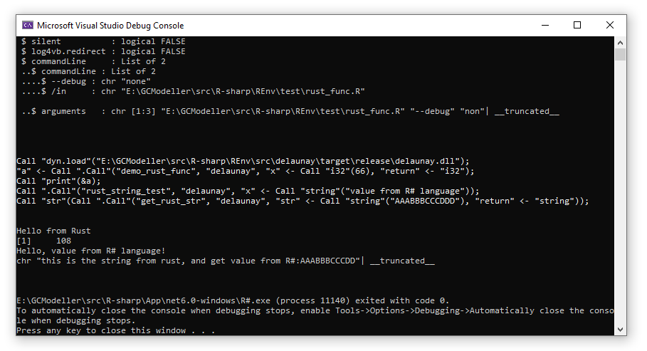 接着我们就可以在R#环境下执行上面的脚本查看rust函数的调用结果了: