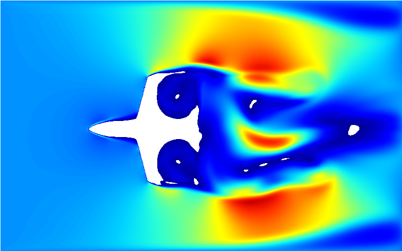 在下面的示例R#代码中,我们首先通过open.pack函数打开了一个用于存储CFD模拟计算结果数据的文件链接,然后再创建了一个用于CFD仿真模拟计算的运行会话。在这个会话中,我们通过加载一个png图片的方式再我们进行2D仿真计算的会话中来加载了一个喷气飞机的计算模型。