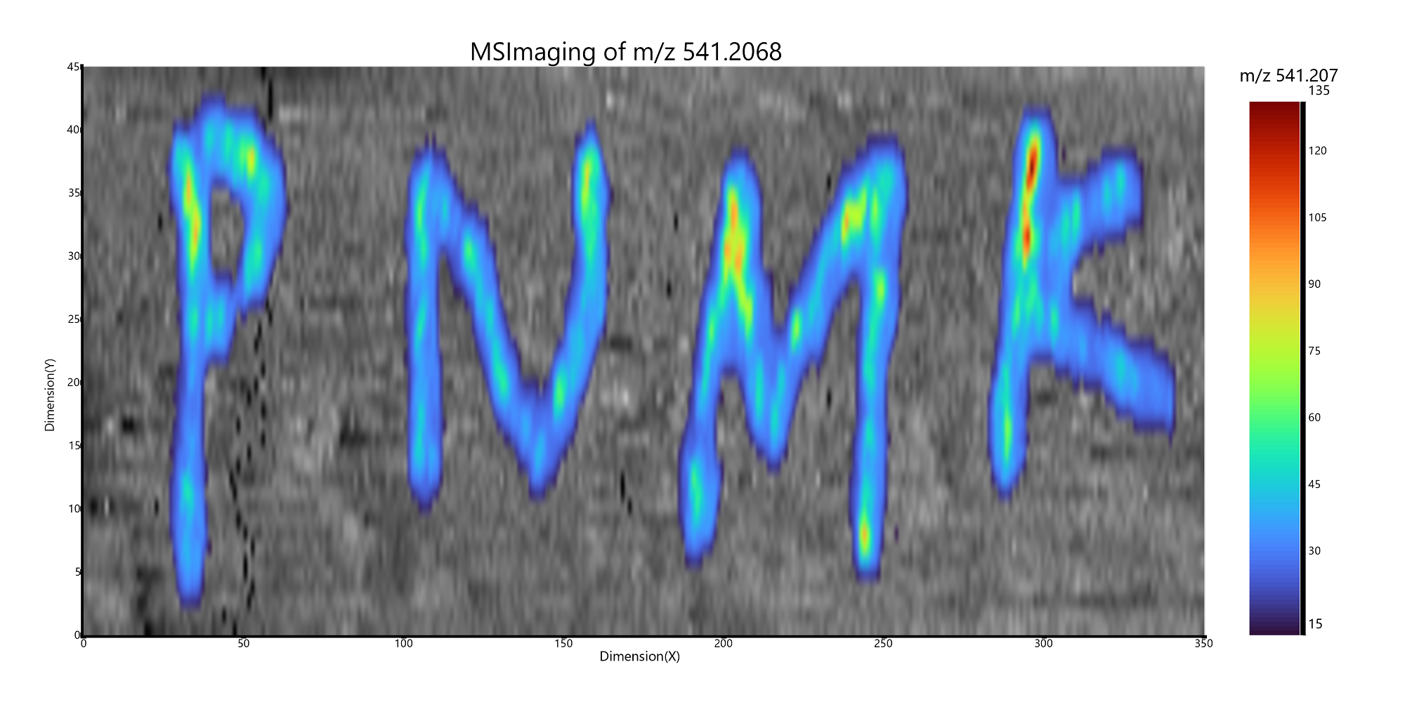 目前进行质谱成像可视化,程序包不仅仅可以使用任意rgb纯色来作为可视化的背景。目前还可以支持直接使用原始数据的背景作为质谱成像的显示背景。进行这个显示的秘诀就在于简单的在脚本中添加一个TIC背景图层:geom_MSIbackground("TIC")