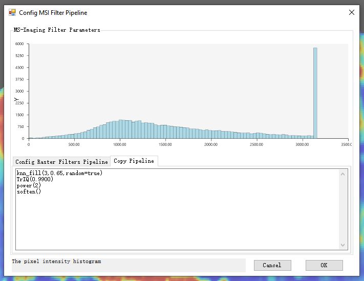 可能从上面的示例代码中,大家也可以看见了,有一个名字叫做geom_MSIfilters的函数,这个函数的作用就是针对成像图添加不同组合的图像信号数据滤镜处理。基于这个滤镜处理函数,可以针对成像的效果进行微调和优化。对于滤镜参数的来源,这些信息可以直接从MZKit工作站软件上进行复制。